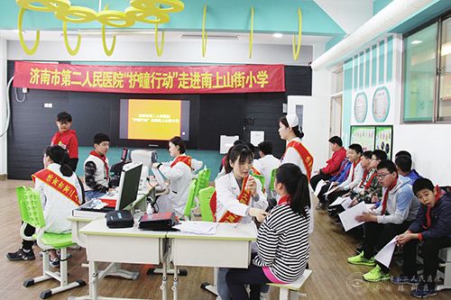 、济南市市中区教育和体育局联合举办的“护瞳行动”大型志愿服务项目正式启动,走进济南市南上山街小学,这也是继3月1日济南市二院对市中区校医及卫生保健教师进行“近视防控专题知识培训”后的首场校园活动。