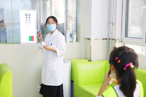 在市二院西院一楼配镜中心,学生们有序进行验光检查,检查结束后,验光师王虹欣向学生们讲解了如何读懂手中的验光单,并针对平时学生和家长疑问比较多的角膜塑形镜,详细地讲解了角膜塑形镜的功能及佩戴方式,得到了学生和家长的欢迎。
