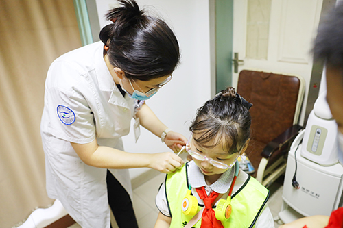 在干眼门诊,护士高聪聪为学生介绍干眼症的发病因素、预防和治疗的同时,护士赵欣现场为有眼部瘙痒干涩症状的学生进行“捉虫”检查,学生们看着在睫毛根部找到的正在蠕动的螨虫十分惊讶,纷纷表示一定会健康用眼,注意对眼部的清洁,千万不可与虫同行!
