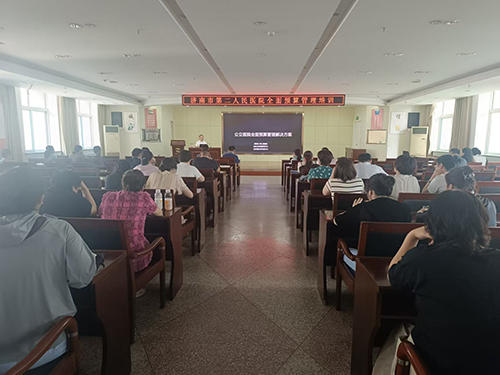 邀请山东大学内控研究中心郑阶财副教授在七楼会议室组织召开全面预算管理培训会议,专职党委副书记曹传洲、副院长王旭、副院长陈璇出席培训活动,全院中层干部、护士长参加本次培训。王旭副院长主持会议。