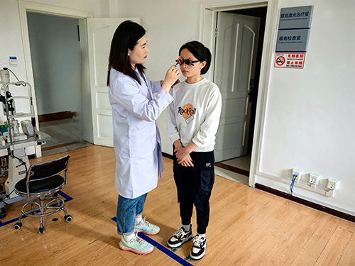 赵淑静医生为患者进行验光配镜