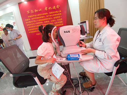 志愿者为居民进行电子验光