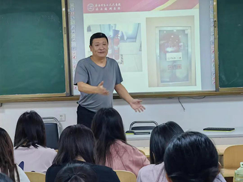 医务科、院感办、安保科、教育教学科、宣传科、眼六科等科室参加了培训授课。医务科为同学们培训了依法执业、行风建设相关法律法规以及医院18项核心制度等重要内容,还为同学们进行了心肺复苏的常规培训。院感办为同学们讲解了手卫生、职业暴露等临床院感知识。安保科为同学们系统培训了消防安全管理制度、易燃易爆危险品和场所防火防爆制度、群体性突发事件应急预案等,并组织学生在户外进行了灭火器的实地操作。宣传科针对医院舆情的预防与处理进行了介绍。眼六科护士长结合临床实际工作,为同学们带来了“提升临床服务温度,加强患者就医体验”的精彩授课。教育教学科带领同学们观看了医院百年院庆宣传片,培训了实习生请销假管理、宿舍管理规定等相关制度规定,指导同学们科学进行学习和职业规划,并针对工作纪律、学习态度、学生活动等提出要求和建议。