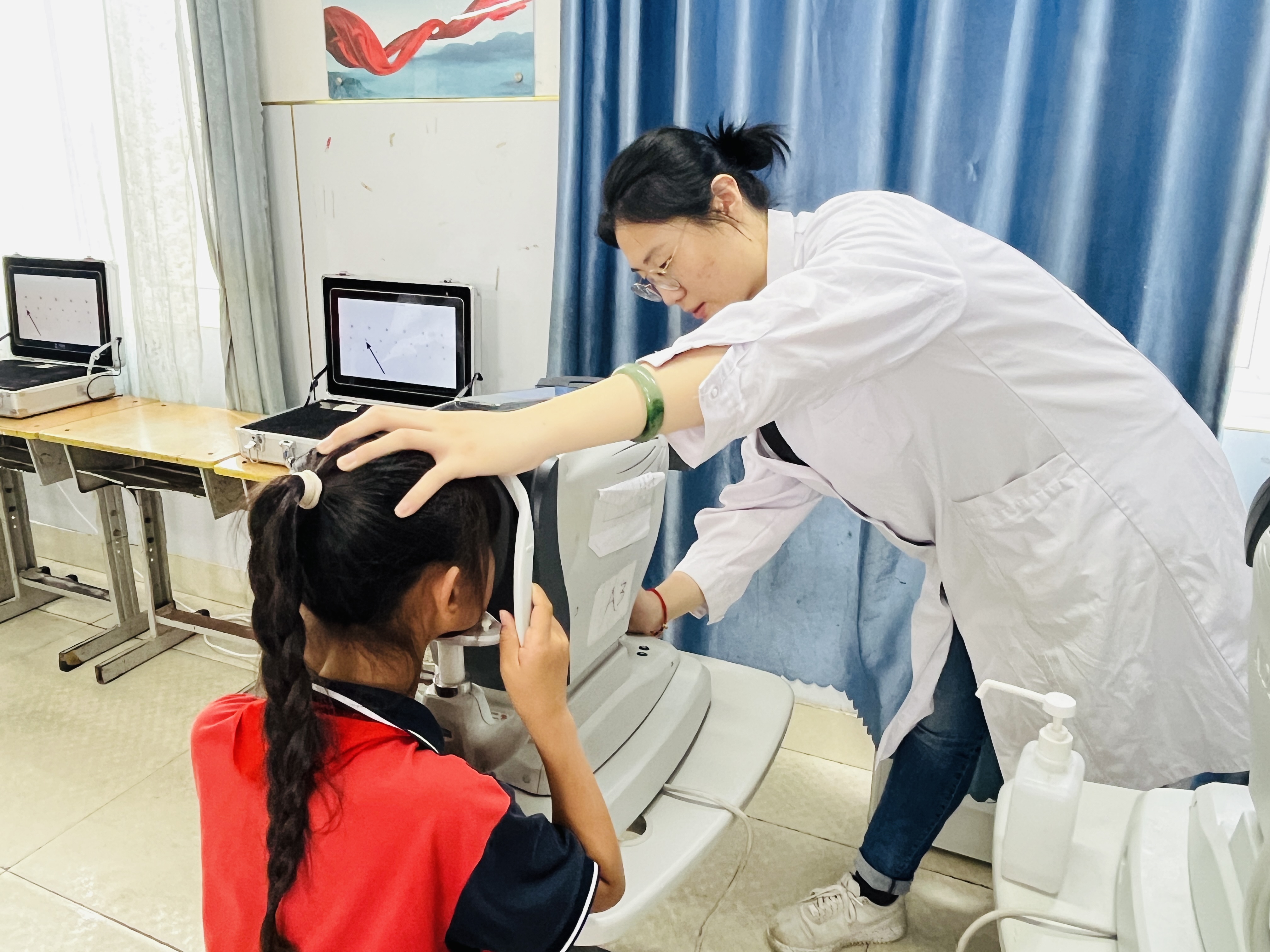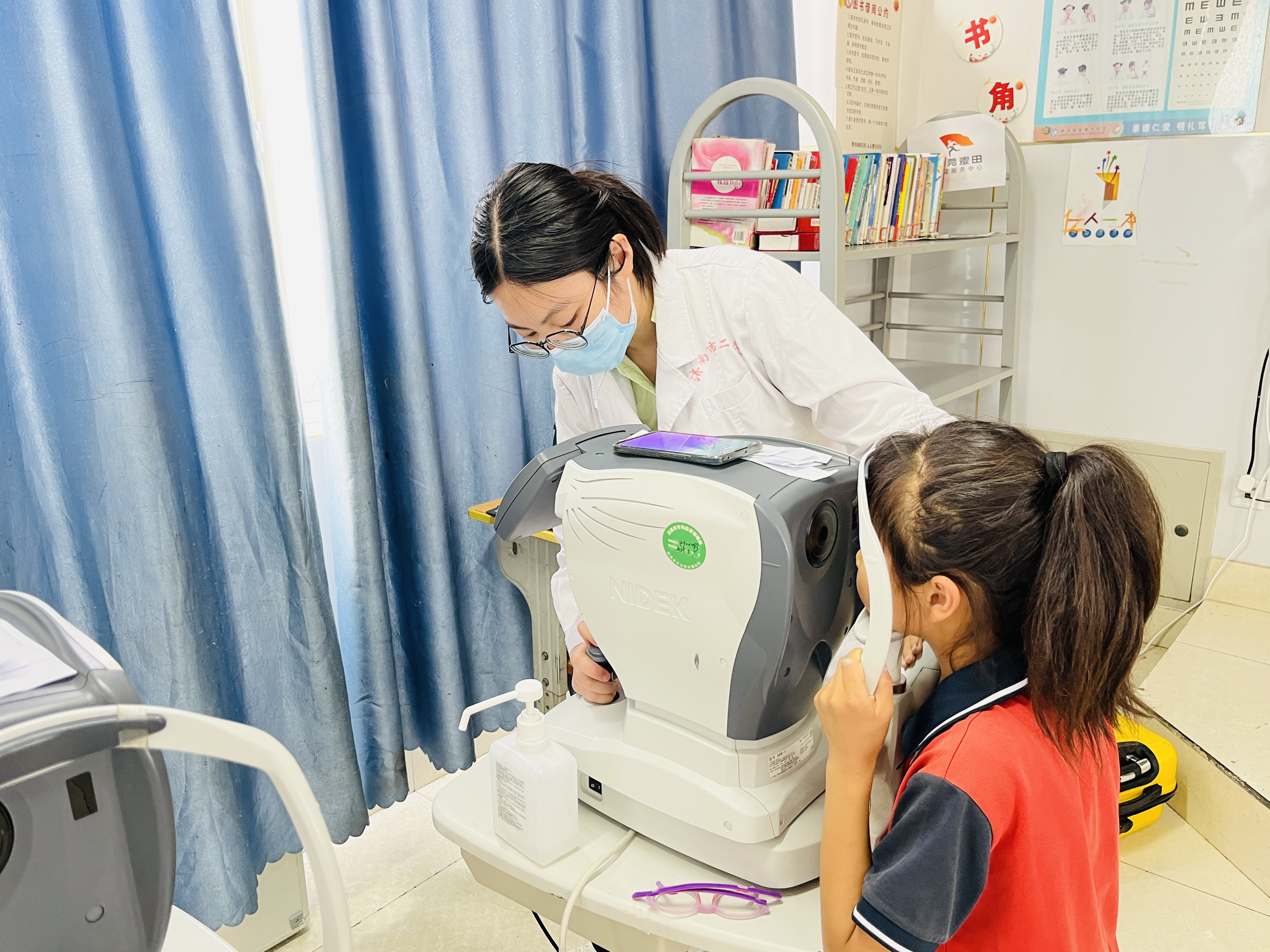 在接下来的近视筛查环节中,来自市二院“护瞳行动”志愿服务队的志愿者为学生们进行了全面细致的近视筛查服务,医务人员为每位学生建立了个人的眼健康档案,详细记录了他们的基本信息和检查结果。