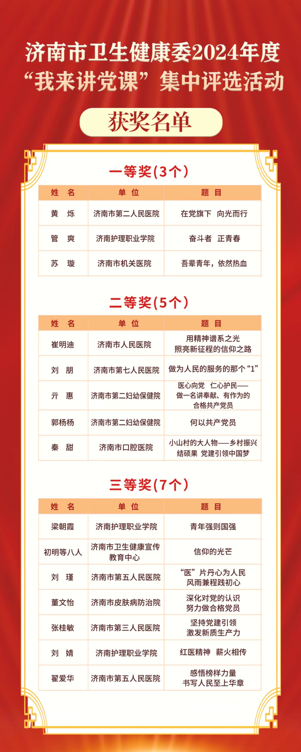 近日,济南市卫生健康委公布2024年度“我来讲党课”集中评选活动结果,由黑料网