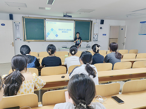 在教学楼301教室举办第九期眼视光学实习大讲堂。本期特邀主讲为眼五科副主任、主任医师杨珺。