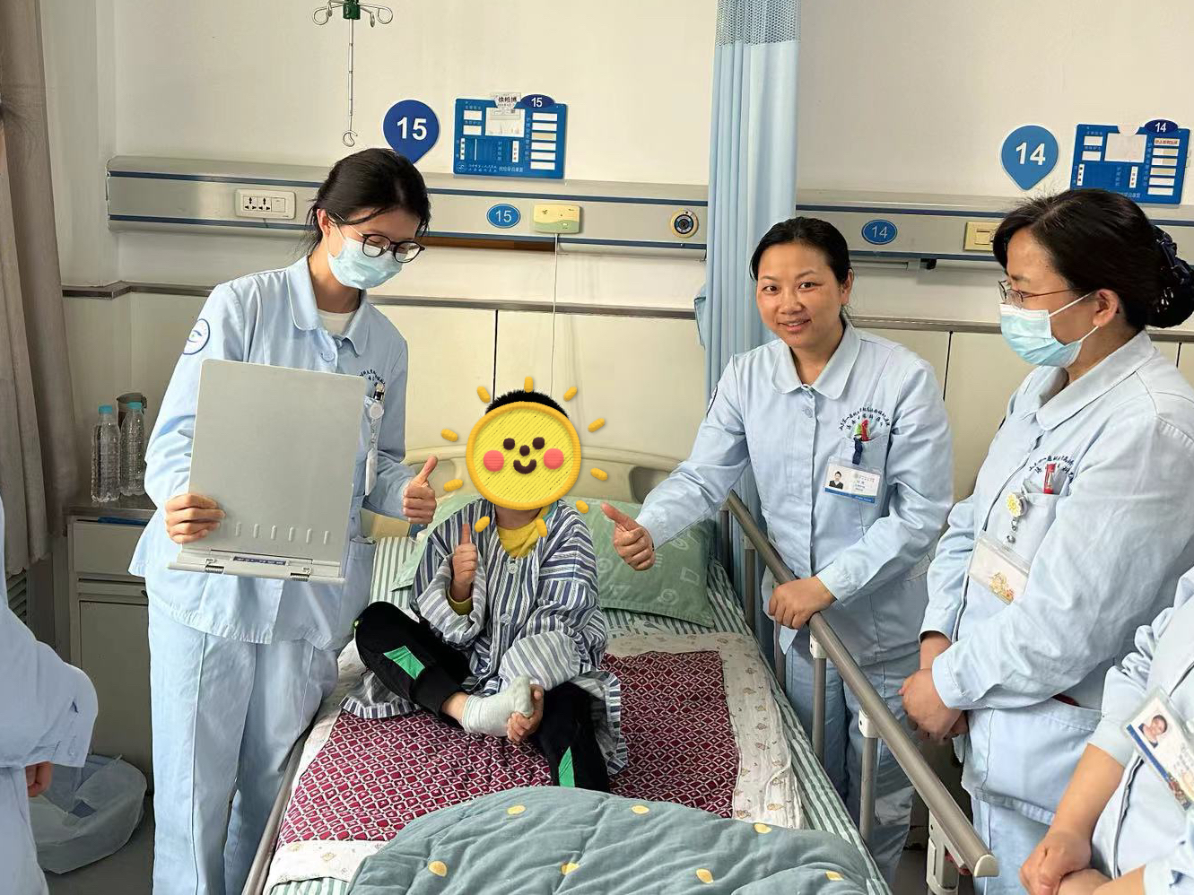 护理人员为勇敢的小患者点赞