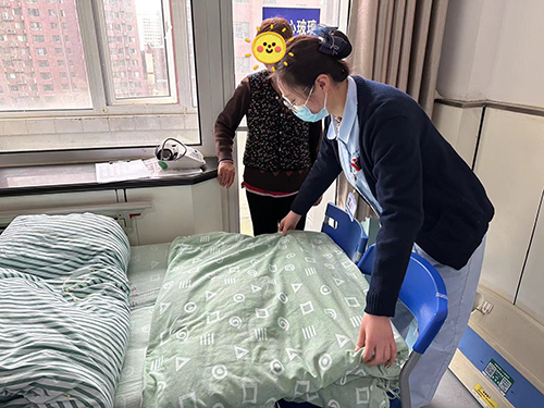 眼四科护理人员想办法为患者加长床铺