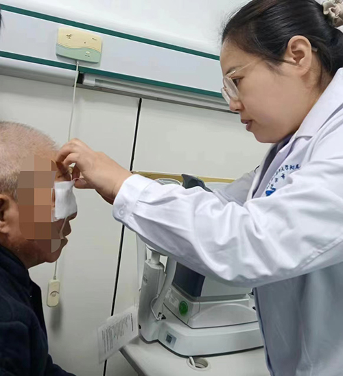 眼三科(青光眼、眼肿瘤专业)诊室接诊了一位特殊的老人。他来自聊城 ,今年80岁,由好几位家人搀扶着来就诊,他每挪动一步都颤颤巍巍,似乎随时要摔倒。家属焦急地说:“我父亲青光眼发作后在当地医院看过病,老人全身状况差,当地医院不敢做手术,建议先保守治疗,但父亲疼得受不了,您快帮我们看看吧!”