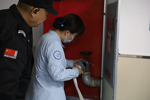 职工们进行消防演练
