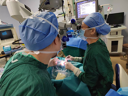 得知病情后,家长非常焦虑,孩子正值学业压力大的时期,家人对他抱有很高的期望。入院后,责任护士发现小马同学总躺在床上,问到问题也不想回答。眼二科护理人员考虑到患者年龄较小,心理压力大,便耐心的给予沟通和疏导。后来得知小马是因为眼睛要做手术,内心深处有些抵触,李群护士长带领眼二科护理团队精心准备并讲述了许多相同被治愈的病例来安抚他,慢慢的,小马内心接受了手术,开始和护士们交流聊天。同时,韩教授和眼科团队在术前制订了详细的手术和治疗方案,并多次与家长进行沟通。考虑到小马同学是初中生,在学习期间无法长时间请假静养,如果采用硅油或惰性气体注入来帮助视网膜复位的这种手术方式创伤大,后期可能面临出现的并发症较多。因此,韩教授决定采取创伤小、并发症少的巩膜外垫压的手术方式。手术中,韩方菊发现小马同学视网膜脱离范围达360度,并且出现网膜下增殖。多亏在术前的精准判断和完备预案,这才使得手术过程进行得平稳顺利。手术后,小马同学得到了精心护理,病情有了明显好转,洋溢的笑脸渐渐取代了焦虑的脸庞。他的父母总是讲“第一时间选择咱医院是我们做的最正确的决定。”