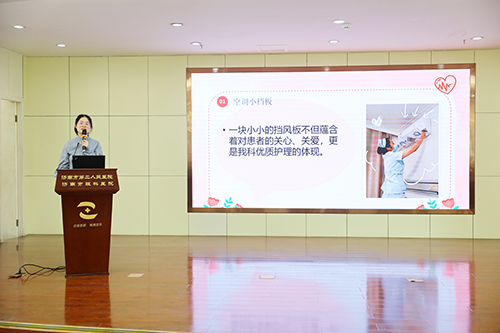 本次活动得到了临床护理人员的积极响应,共有13名选手参加了本次比赛。选手们借助精美生动的PPT等展现形式,图文并茂的情景再现经典服务案例,每个人都充分表达对“患”位体验活动的感谢与收获。“做有温度的护士,行有温度的护理”“以患者之心,观自我言行”“盲行之光—在黑暗中寻找护理真谛”“送你一朵小红花”“关爱老人多一点”等成为演讲中的“关键词”。