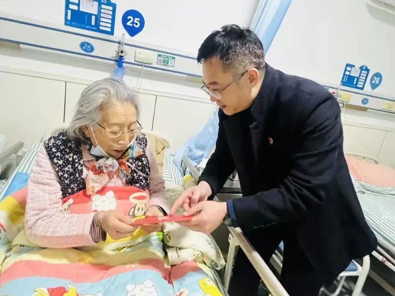 除到家中走访老干部外,慰问组一行还专程探望了住院治疗的离退休老干部,为他们送去新春的问候。病房中,院领导将慰问品亲手送到每位老同志的病床前,关切地询问了他们的病情及治疗情况,并鼓励他们保持乐观向上的心态,祝愿早日康复。院领导对身边的医务人员说,对老干部的日常护理必须时刻做到耐心、细心、用心,让老同志安心养病,争取早日康复。院领导的谆谆话语,让离退休老同志们倍感温暖,纷纷表示感谢。