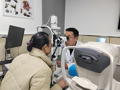 李彬主任用裂隙灯为患者检查眼睛