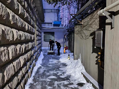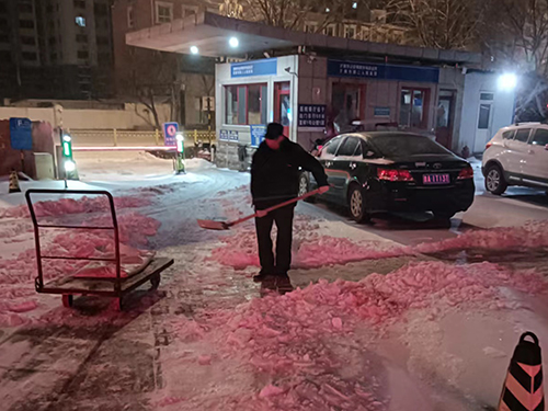 不到六点,物业和安保人员已经忙碌在清理积雪的第一线。他们及时清理了医院门口和道路上的积雪,确保车辆和行人的安全。同时,他们积极进行车辆调度停放,合理规划停车位,保证医院道路通畅。