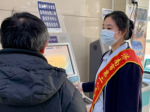 导医台工作人员帮助患者进行预约挂号