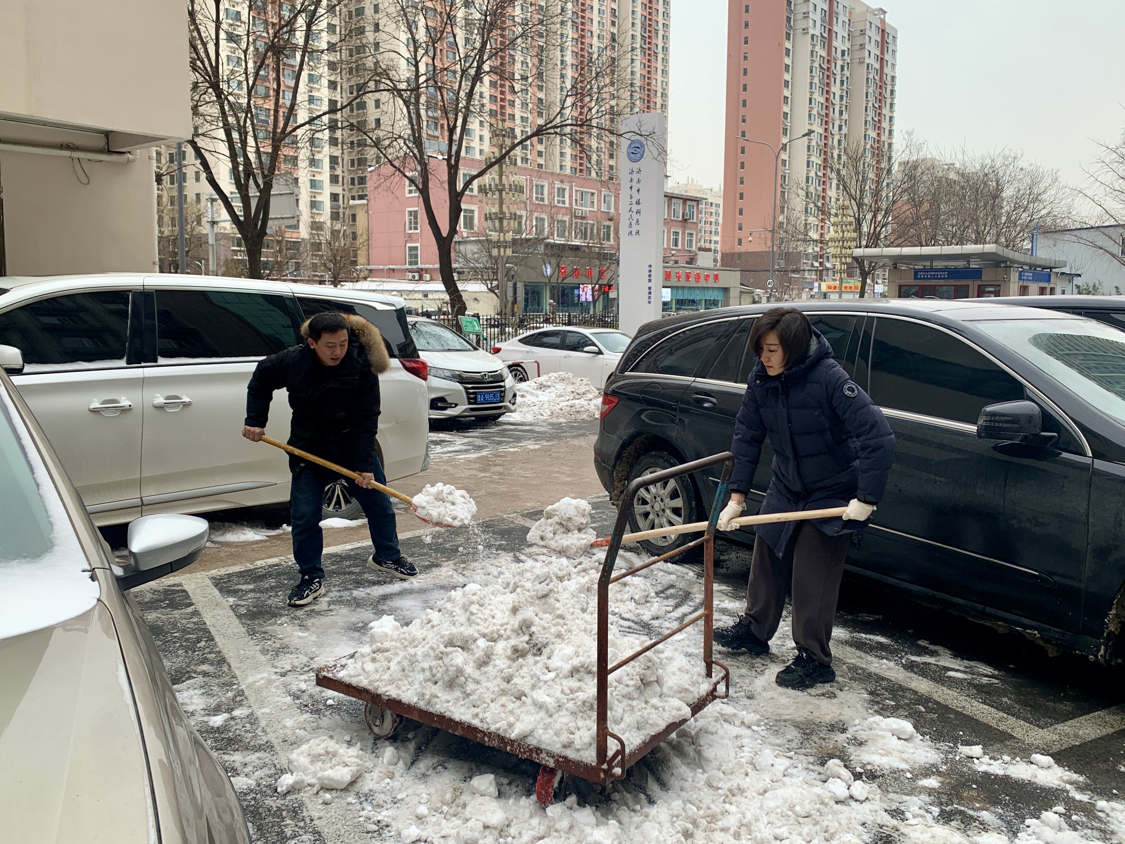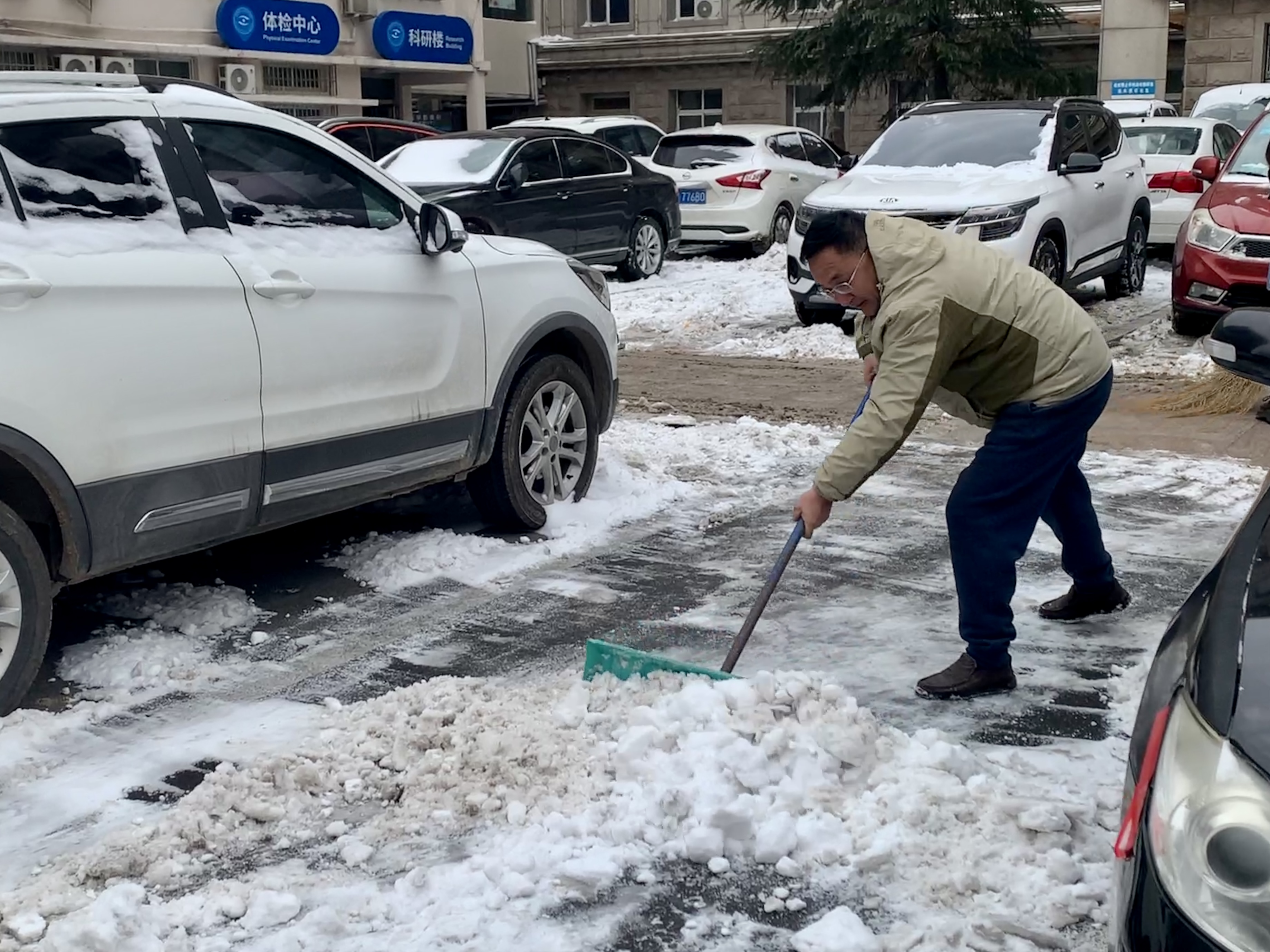 院领导清扫院内积雪