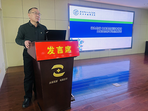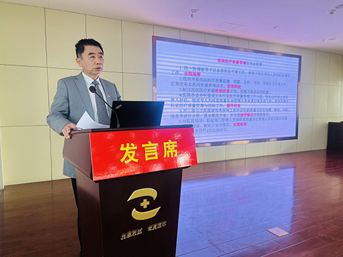 市二院院长、医疗质量管理委员会主任委员刘军作讲话,他指出:三级公立医院绩效考核中的各项指标是规范医疗行为的重要标准,对日常工作起着“指挥棒”的作用,对医疗安全要做到常抓不懈,在日常工作中要紧扣标准不断提升医疗质量和服务质量,争取国考取得更好名次。