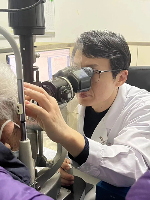 张同河主任用裂隙灯为患者检查眼睛