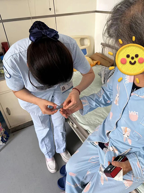 护理人员为患者修剪指甲