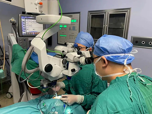2023年三月份焦老师的右眼又出现了模糊症状,看东西总有雾感,出于信任,焦老师再次来到市二院,眼二科张同河主任及其团队为焦老师进行检查诊断,告知焦老师是由于她多年糖尿病诱发起来的白内障。在张同河主任的带领下行后入路玻璃体切割术+白内障超声乳化抽吸术+植入人工晶状体。