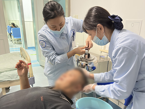64岁的桑大叔因左眼白内障视力模糊而住院,他已有十几年的糖尿病,但从未系统进行过药物治疗,所以血糖控制不佳,导致住院时间较长。由于患者左眼刚做了白内障手术,家人担心洗头会让污水进入眼睛里,一直不敢给他洗头,爱干净的桑大叔头发逐渐开始打结,梳不顺,有些味道,甚至影响了休息。手术后第3天,护士长刘燕照例到病房巡视,在与桑大叔及家属的交流中了解到这一情况后,主动提出帮助他洗头。刘燕护士长和责任护士赵英姿一起,打好热水,调好水温,将患者调整到舒适位置,为他轻轻梳顺头发,抹上洗发水,不到十分钟洗头就结束了,还为桑先生进行了面部清洁,清洗完毕后,老人家变得清爽精神,连声说“太感谢你们啦!洗完头,我感觉整个人都变得有精神了,舒服极了”。