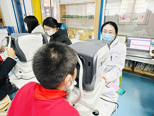 医务人员为学生进行电子验光