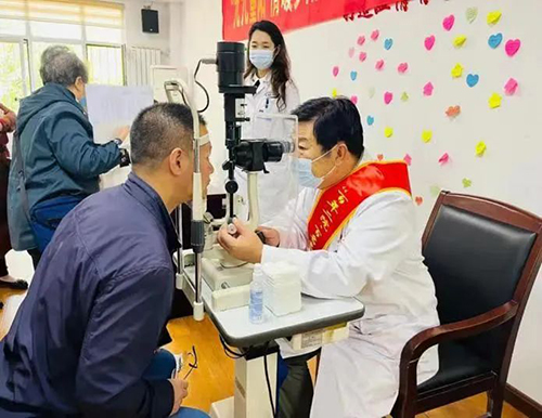 老专家用裂隙灯为患者检查眼睛