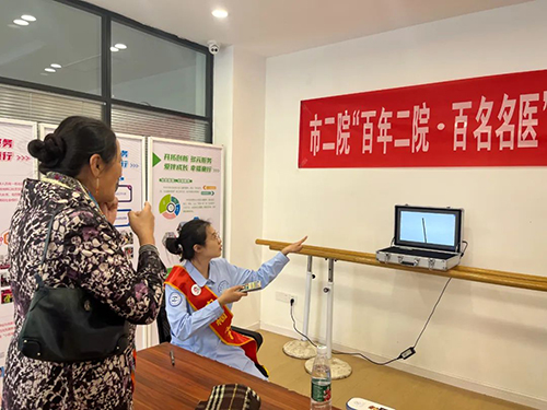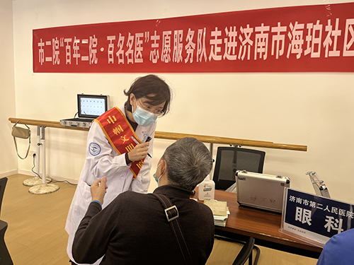 市二院青光眼科副主任、眼科主任医师张苗苗为居民检查眼睛