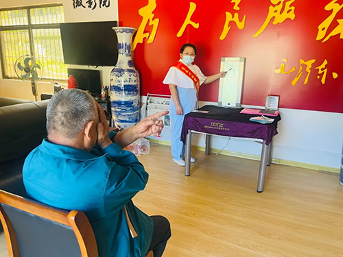 志愿者为村民测视力