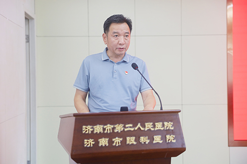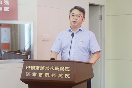 市二院党委书记东光国作大会致辞,他代表院领导班子向全体医师表达了节日的祝福,高度肯定了全院医务工作者在疾病救治中发挥的重要作用。他指出,在全面贯彻党的二十大精神的开局之年,二院全体医师要听党指挥,奋发进取,攻坚克难,牢记百年眼科的初心使命。发扬“功成不必在我,功成必定有我”的精神,助力二院百年眼科事业再上新台阶,切实担负起推进健康中国建设、保障人民健康的神圣使命,为全面建设社会主义现代化国家,实现第二个百年奋斗目标贡献二院力量。