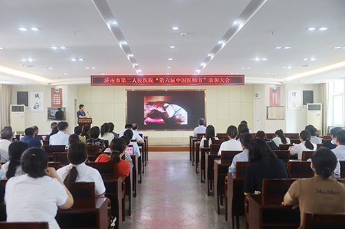 举行“第六届中国医师节”表彰大会。院领导班子全体成员、全院医务人员参加大会,会议由市二院副院长王旭主持。