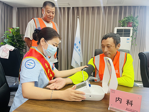 志愿者为职工测量血压