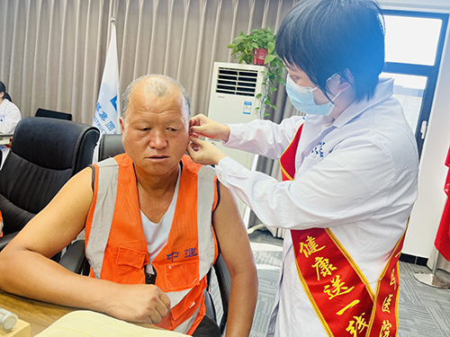 志愿者为职工进行耳穴压豆