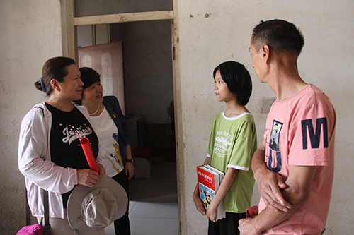 医技党支部的党员代表们走进商河县龙桑寺镇大毕家村五年级小学生正正(化名)家中,为孩子送去书籍、文具等学习用品,并送上支部党员募集的爱心助学款2000余元。