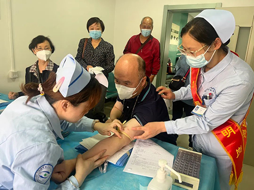 健康体检中心工作人员亲切迎接离退休老同志来院进行体检