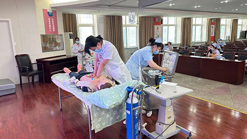 演练中,参训人员利用人体模型模拟现场操作,要求规范熟练完成从病情评估、现场施救、胸外心脏按压、开放气道、辅助呼吸等步骤,准确完成实施抢救的全过程。