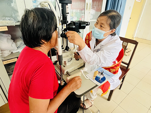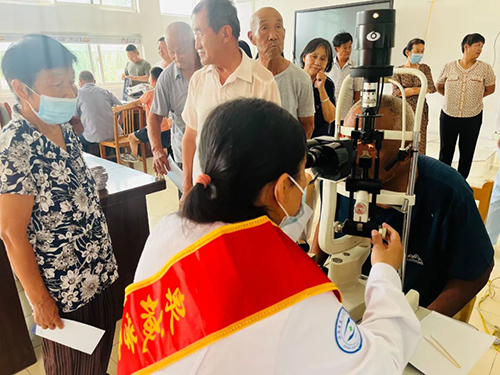 市二院专家用裂隙灯为村民检查眼睛