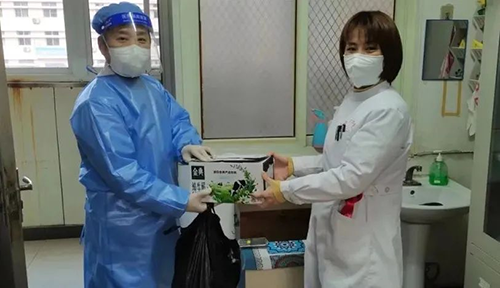 工会组织捐赠物资发放工作,向战疫一线科室发放爱心慰问品。