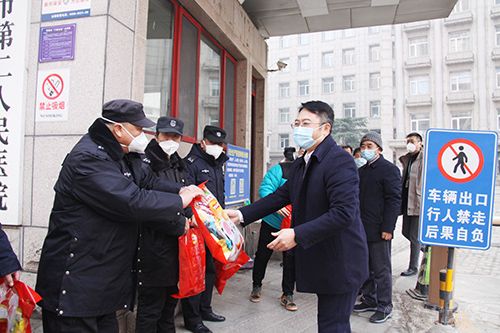 市二院党委书记东光国为坚守在一线的工作人员送去慰问品