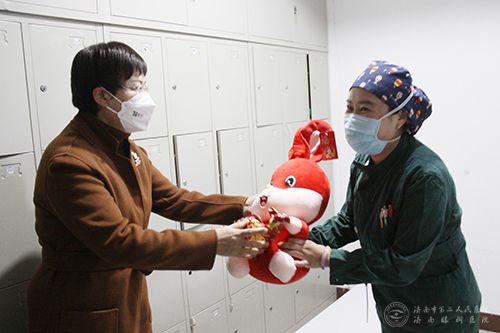 市卫健委党组副书记、市疾控中心党委书记马红薇为手术室职工送去慰问品