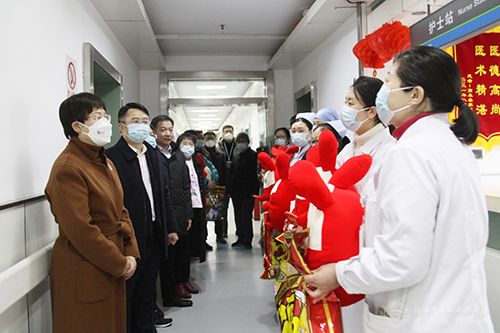 督导组一行深入医院一线科室,就医疗救治、核酸检测、“平安医院”建设、安全生产落实等情况进行了现场督导,详细询问节日值班、医疗服务、后勤保障等情况,为一线医务人员送去了慰问品,对他们节日期间坚守岗位表示感谢。