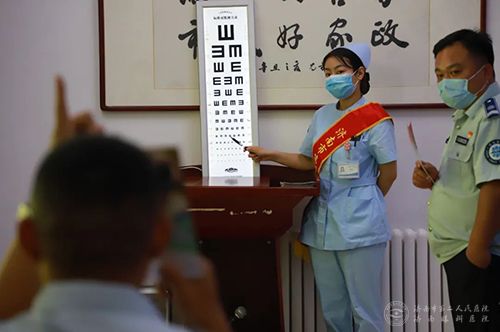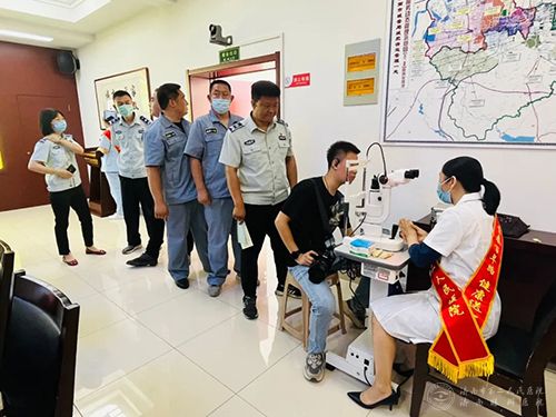 职工们排队检查眼睛