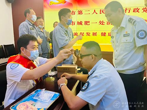 党委委员、纪委书记李洁月,济南市城肥清运管理副处长杨冬,清疏二队队长孙平华,清疏二队书记陈国瑞,清疏二队副队长刘秀冰,市二院团委副书记黄烁,市二院青年文明号眼六科医护代表,市二院团员先锋岗中医眼科医生代表,城肥清运管理一处职工、党员代表,市二院团员代表等参加活动。