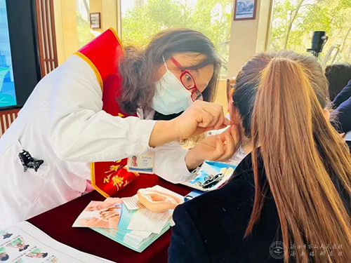 志愿者为市民进行耳穴压豆