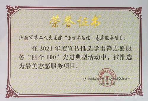 “近视早防控”志愿服务项目荣获“最美志愿服务项目”称号。