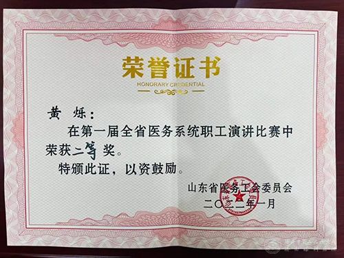 选派选手黄烁代表济南市医务工会参赛,凭借出色发挥,荣获决赛第三名,被评为二等奖。
