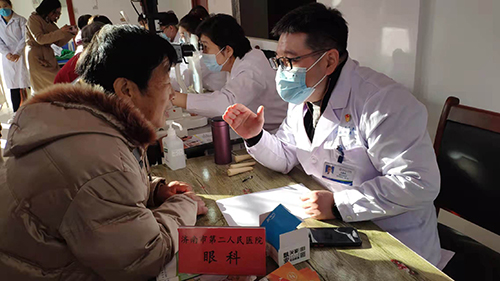 本次活动由省派“加强农村基层党组织建设”工作队市中总队和国家级、省级驻济媒体联合主办,医院派出了由白内障科主任王晶、眼表疾病科主任张晨明组成的眼科专家志愿服务团队。医护人员为村民们开展了视力检查、眼健康宣教和眼病义诊。志愿者们在现场耐心细致地解答居民们提出的各种眼病问题,针对老年人常见的白内障、青光眼、眼底病等问题开展了科普宣讲。本次活动服务百姓50余人次,发放宣教材料150余份。