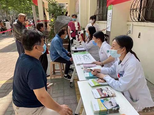 青光眼、白内障、眼底病、角膜病等专业的眼科医护人员组成4支队伍,同时奔赴各个义诊科普点。本次活动的志愿者全部由中级职称以上医务人员担任,团队携带了视力表、裂隙灯、验光仪、眼底镜等多种眼科检查设备,为就诊群众提供了视力、眼前节、眼后节等专业检查。与此同时,志愿者们还在现场向群众发放了眼科科普宣传册、视力表等资料,并送上医院制作的精致纪念品,积极宣传爱眼知识。
