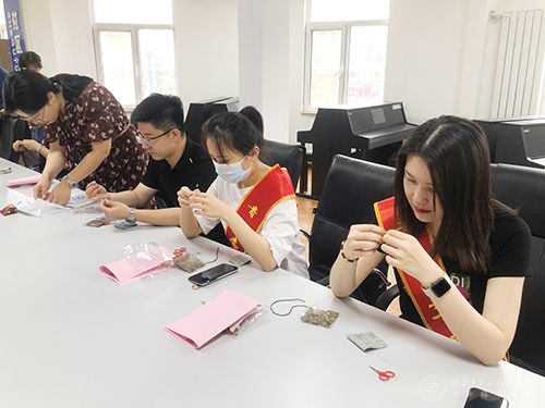 团员们一起制作香囊